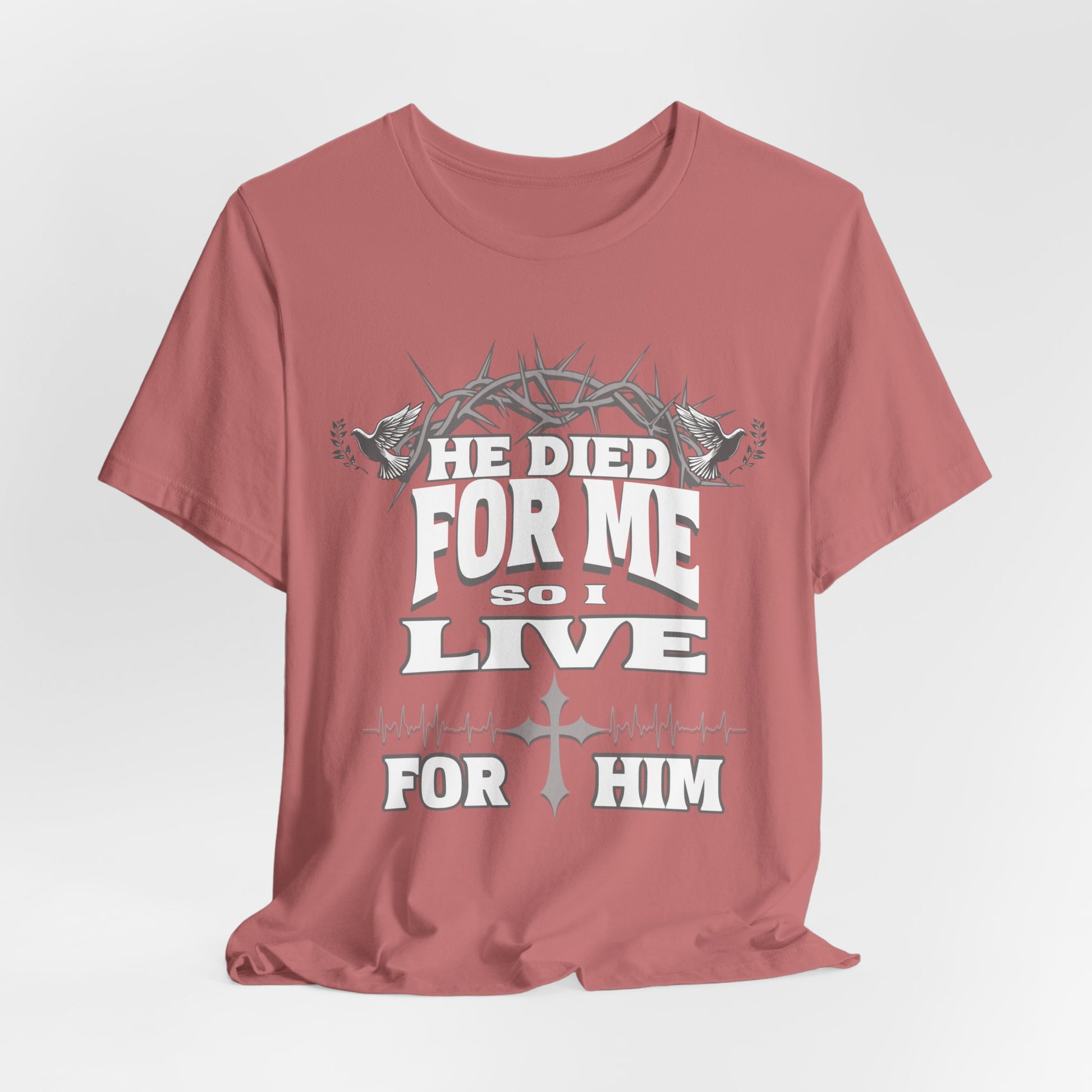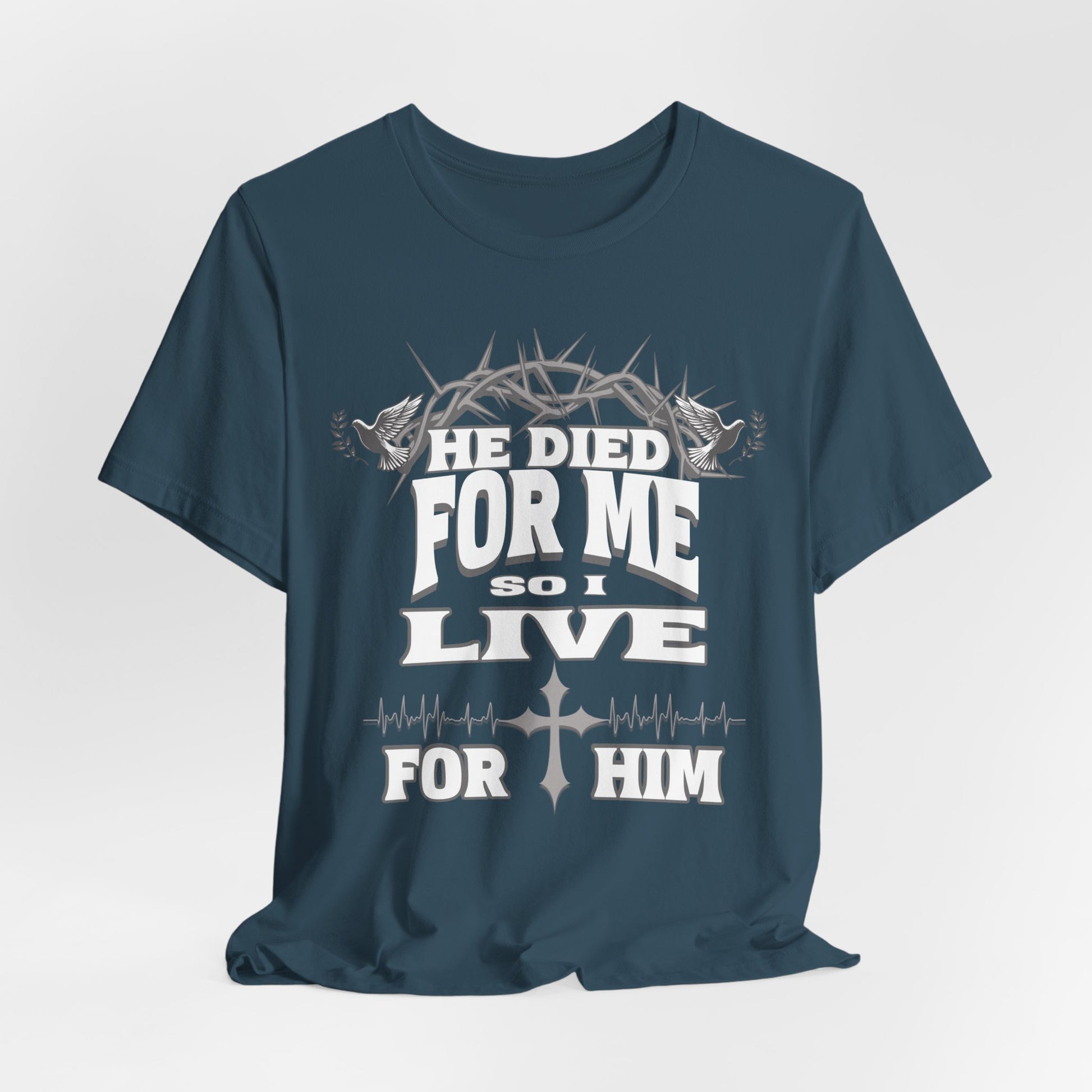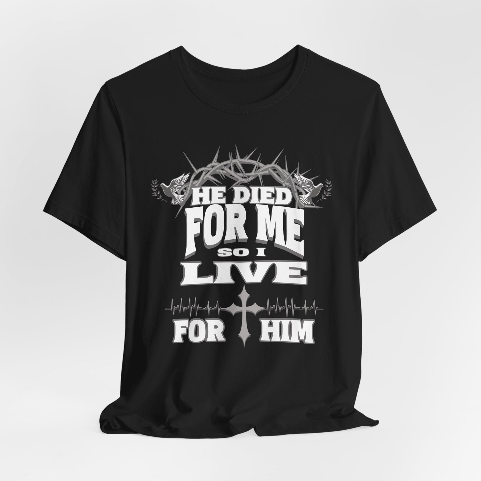 This Live For Him Christian T-shirt exudes faith and spirituality, making it the perfect wardrobe addition for those who want to proudly showcase their religious beliefs. It's ideal for believers looking to express their devotion during religious holidays, services, or everyday wear. The unisex design and lightweight, breathable fabric make it versatile for casual outings or relaxed gatherings.